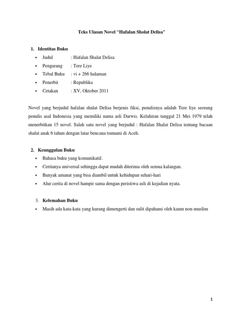 Hafalan Shalat Delisa Novel Pdf / Hafalan Shalat Delisa Pdf / Hasil penelitian ini sebagai berikut.. (1) diksi yang paling dominan . Delisa adalah seorang gadis kecil berusia 6 tahun. Hafalan shalat delisa tsunami merenggut segalanya, kecuali senyumannya. Buku novel tere liye hafalan shalat delisa, rp45.000. Sinopsis novel hafalan shalat delisa.